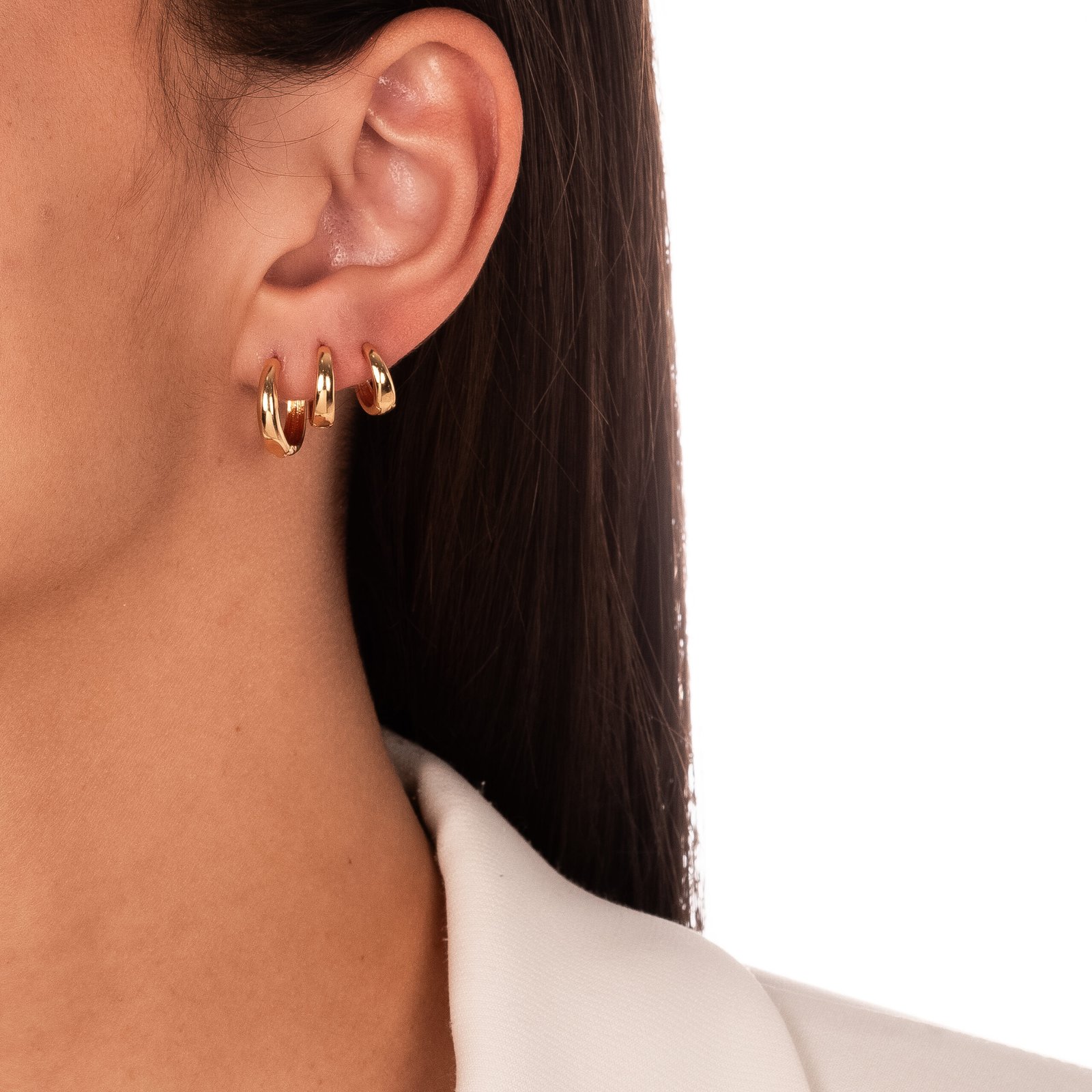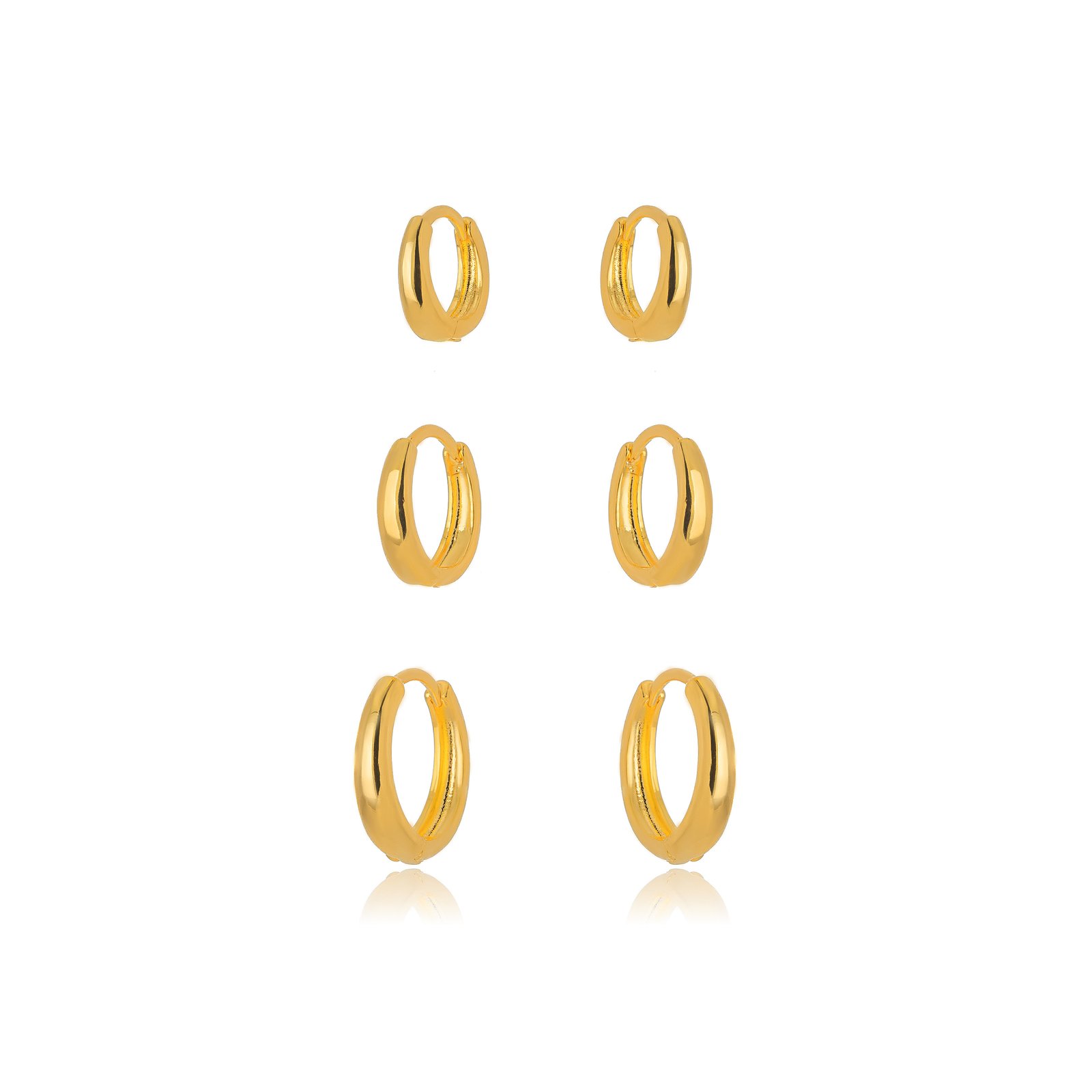 Brinco 3 Furos Argola Lisa Confeccionado em Banho de Ouro Amarelo de 18K.