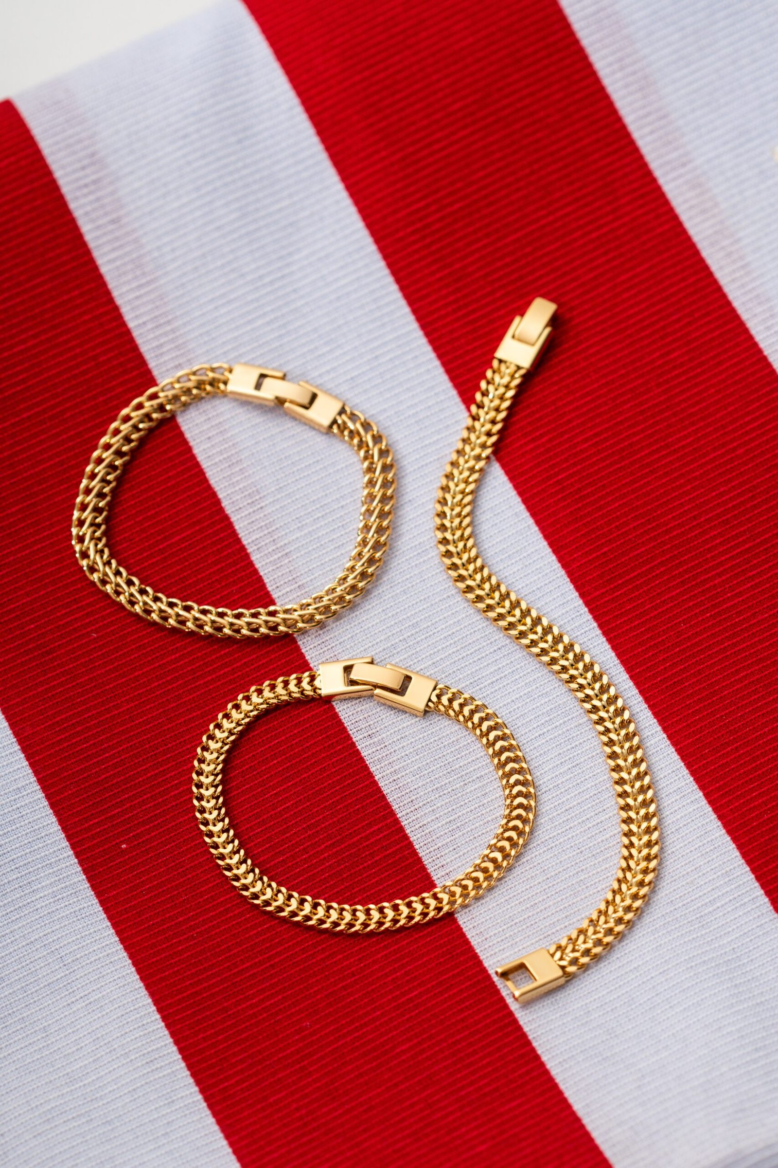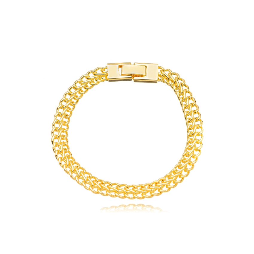 Pulseira Duplo Elos Liso Confeccionado em Banho de Ouro amarelo 18K.